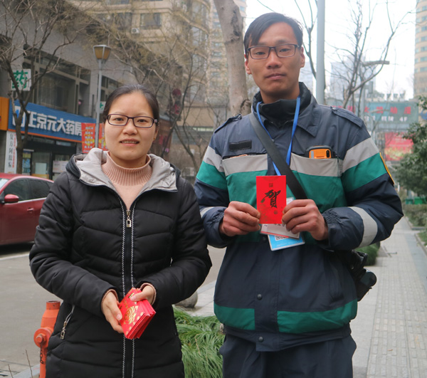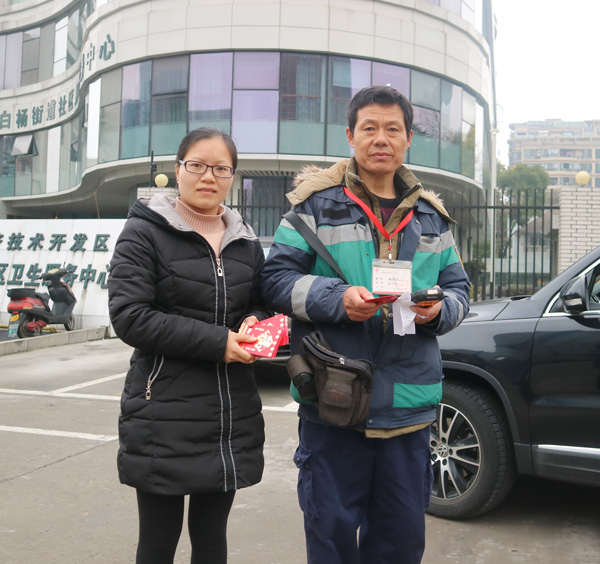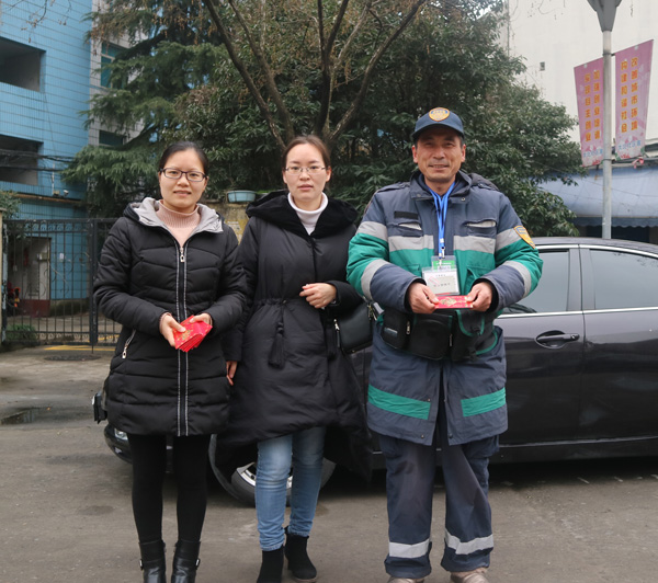 開年第一天上班,公司領導給奮戰(zhàn)在一線的停車收費員發(fā)開門紅包