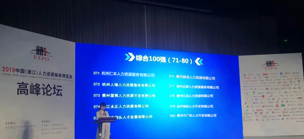 杭州仁本榮獲人力資源服務(wù)綜合百強企業(yè)