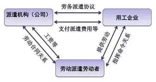 勞務(wù)派遣是指由派遣單位與派遣勞工訂立勞動(dòng)合同,由派遣勞工向要派企業(yè)給付勞務(wù),勞動(dòng)合同關(guān)系存在于派遣機(jī)構(gòu)與派遣勞工之間,但勞動(dòng)力給付的事實(shí)則發(fā)生于派遣勞工與要派企業(yè)之間。勞務(wù)派遣最顯著特征就是勞動(dòng)力的雇用和使用相分離。 勞務(wù)派遣的三方法律關(guān)系 1、勞務(wù)派遣單位與被派遣勞動(dòng)者之間的關(guān)系 在勞務(wù)派遣用工形式下,勞動(dòng)者與勞務(wù)派遣單位簽訂勞動(dòng)合同,雙方建立勞動(dòng)關(guān)系。根據(jù)《勞動(dòng)合同法》第五十八條“勞務(wù)派遣單位是本法所稱用人單位,應(yīng)履行用人單位對(duì)勞動(dòng)者的義務(wù)?!?/span> 該條款明確了勞務(wù)派遣單位的雇主需承擔(dān)支付勞動(dòng)者的工資報(bào)酬、社會(huì)保險(xiǎn)等責(zé)任。但這種勞動(dòng)關(guān)系有別于正常的勞動(dòng)關(guān)系,勞務(wù)派遣單位并不實(shí)際使用勞動(dòng)者,而是將其派遣至實(shí)際用工企業(yè)從事勞動(dòng)。 2、勞務(wù)派遣單位和實(shí)際用工企業(yè)之間的關(guān)系 在勞務(wù)派遣中,派遣單位與用工企業(yè)簽訂勞務(wù)派遣合同,約定雙方的權(quán)利義務(wù),在合同中,派遣單位承擔(dān)的義務(wù)主要是把符合用工單位要求的合格勞動(dòng)者提供給用工單位,用工單位承擔(dān)的義務(wù)主要是向派遣單位支付服務(wù)費(fèi)用,該協(xié)議符合民事合同的基本特征,雙方之間建立的是民事法律關(guān)系中的民事合同關(guān)系。 通過該種形式,用工企業(yè)將用工責(zé)任部分轉(zhuǎn)嫁給勞務(wù)派遣單位,通過設(shè)置差異化薪酬福利制度,達(dá)到降低用工成本的目的。