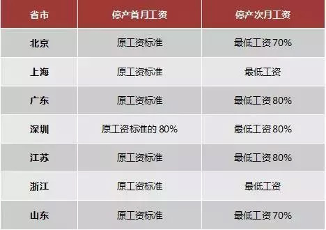 困難企業(yè)的勞動關系和工資怎么處理? 對于受疫情影響生產(chǎn)經(jīng)營的困難企業(yè)的勞動關系、工資支付等規(guī)定,那又是怎么樣的呢? 根據(jù)通知:企業(yè)因受疫情影響導致生產(chǎn)經(jīng)營困難的,可以通過與職工協(xié)商一致采取調(diào)整薪酬、輪崗輪休、縮短工時等方式穩(wěn)定工作崗位,盡量不裁員或者少裁員。符合條件的企業(yè),可按規(guī)定享受穩(wěn)崗補貼。 如果停產(chǎn)的第一個月按照原工資支付,進入待崗期,企業(yè)發(fā)放生活費,標準按照各省市規(guī)定執(zhí)行。符合規(guī)定條件的企業(yè),可申領穩(wěn)崗補貼。 北京規(guī)定:根據(jù)《北京市工資支付規(guī)定》第27條,用人單位沒有安排勞動者工作的,應當按照不低于本市最低工資標準的70%支付勞動者基本生活費。 附圖:部分省市停工停產(chǎn)工資一覽表