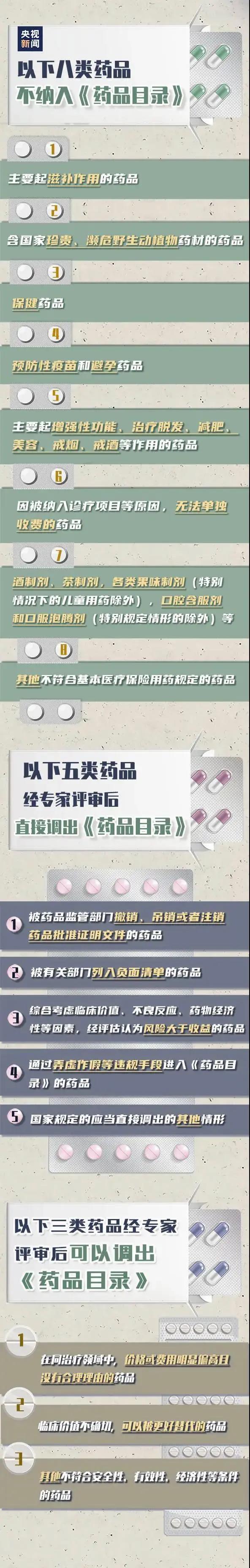 另外辦法明確了包括預(yù)防性疫苗,滋補(bǔ)藥品,保健藥品,脫發(fā)、美容減肥類等在內(nèi)的八類不得進(jìn)入《藥品目錄》的藥品;規(guī)定了醫(yī)?;鸬闹Ц掇k法等。 日常就醫(yī)問藥時(shí) 還有哪些藥品不可報(bào)銷? 藥品調(diào)入、出《藥品目錄》的標(biāo)準(zhǔn)是啥? 哪些可以用醫(yī)?;鹬Ц? 一圖了解↓