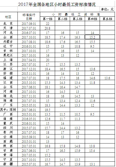 | 2017年全國(guó)各地最低工資出爐 你的工資高出多少? |