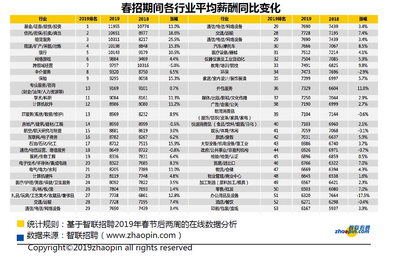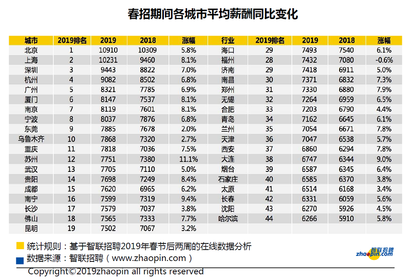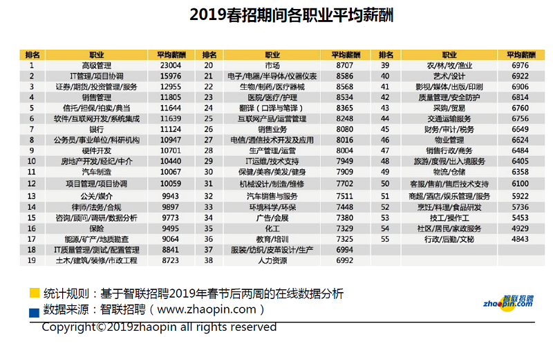 | 智聯(lián)招聘發(fā)布《2019春季人才流動報(bào)告》春招平均薪酬為8,165元 |
