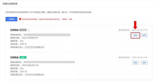 注意:如有“已失效”狀態(tài)的信息,則需先刪除之后才能點擊“一鍵確認(rèn)”。